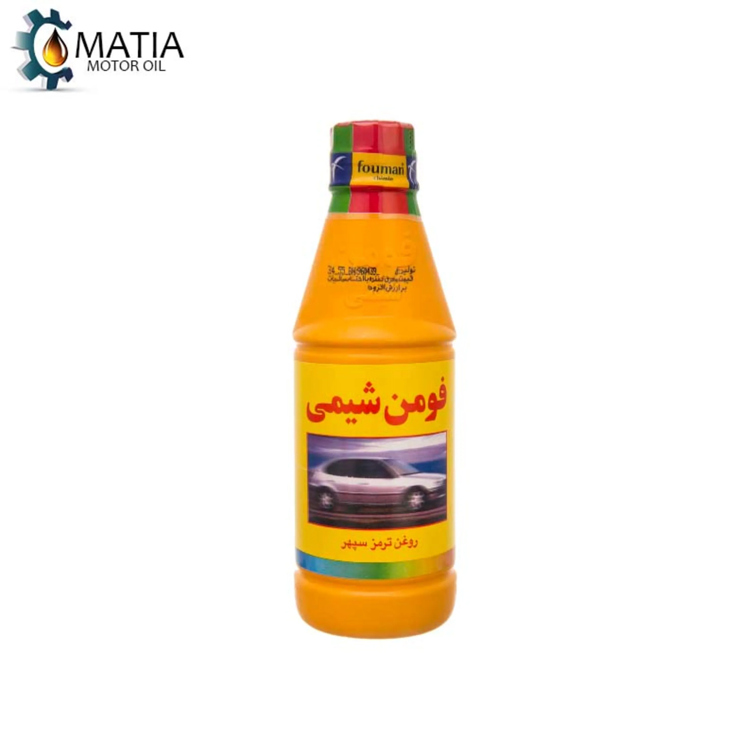 محصولات روغن ترمز فومن شیمی بر پایه تکنولوژی غیر نفتی و در دو استاندارد DOT3 به رنگ زرد و DOT4 به رنگ آبی تولید میشوند